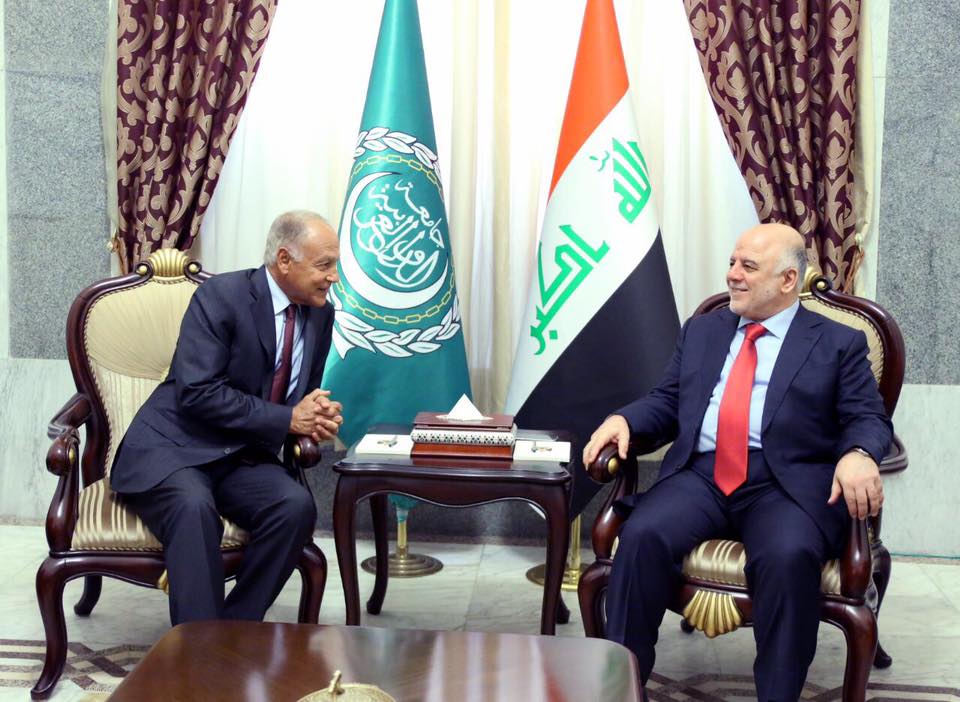 بحث رئيس الوزراء حيدر العبادي مع الامين العام لجامعة الدول العربية، أحمد ابو الغيط، تطورات الاوضاع السياسية والامنية في العراق والمنطقة، اضافة الى ملف الحرب على الارهاب.