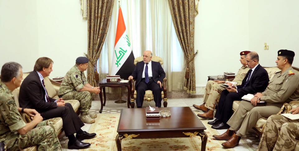 بحث رئيس الوزراء حيدر العبادي مع رئيس اركان الجيش البريطاني الفريق "ستوارت بييج" تعزيز التعاون العسكري بين البلدين.