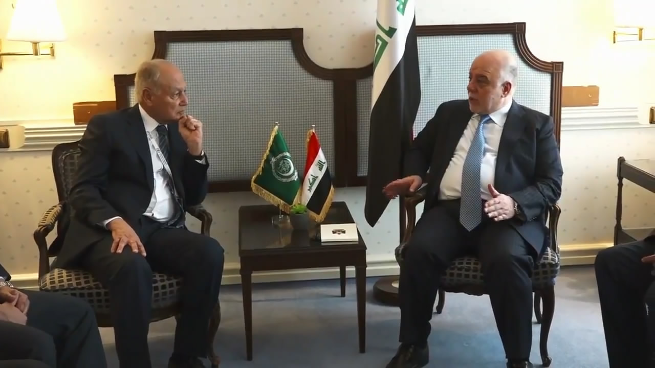 جاء ذلك خلال لقاء العبادي بالأمين العام للجامعة العربية أحمد أبو الغيط على هامش مؤتمر ميونيخ للامن وقال بيان لمكتب رئيس الوزراء أنه جرى خلال اللقاء بحث اوضاع المنطقة والازمة في سوريا وأهمية تفعيل دور الجامعة في تحقيق امن واستقرار الدول العربية ووقف التدخلات في خيارات شعوبها