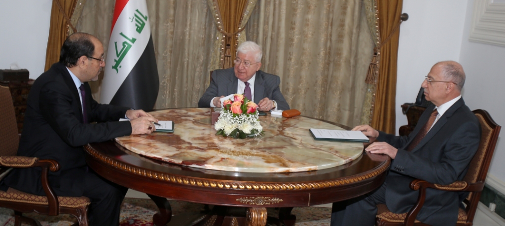 بحث رئيس الجمهورية فؤاد معصوم مع نائبيه أسامة النجيفي، ونوري المالكي، التطورات السياسية وملف الانتخابات النيابية والموازنة الاتحادية للعام الجاري.