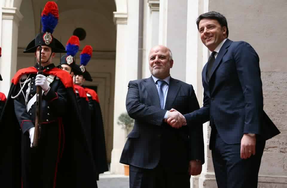 توجه رئيس الحكومة حيدر العبادي إلى روما، ومنها إلى برلين، في زيارتين رسميتين، يبحث خلالهما الحرب ضد الإرهاب، والأزمة المالية التي تواجهها البلاده.