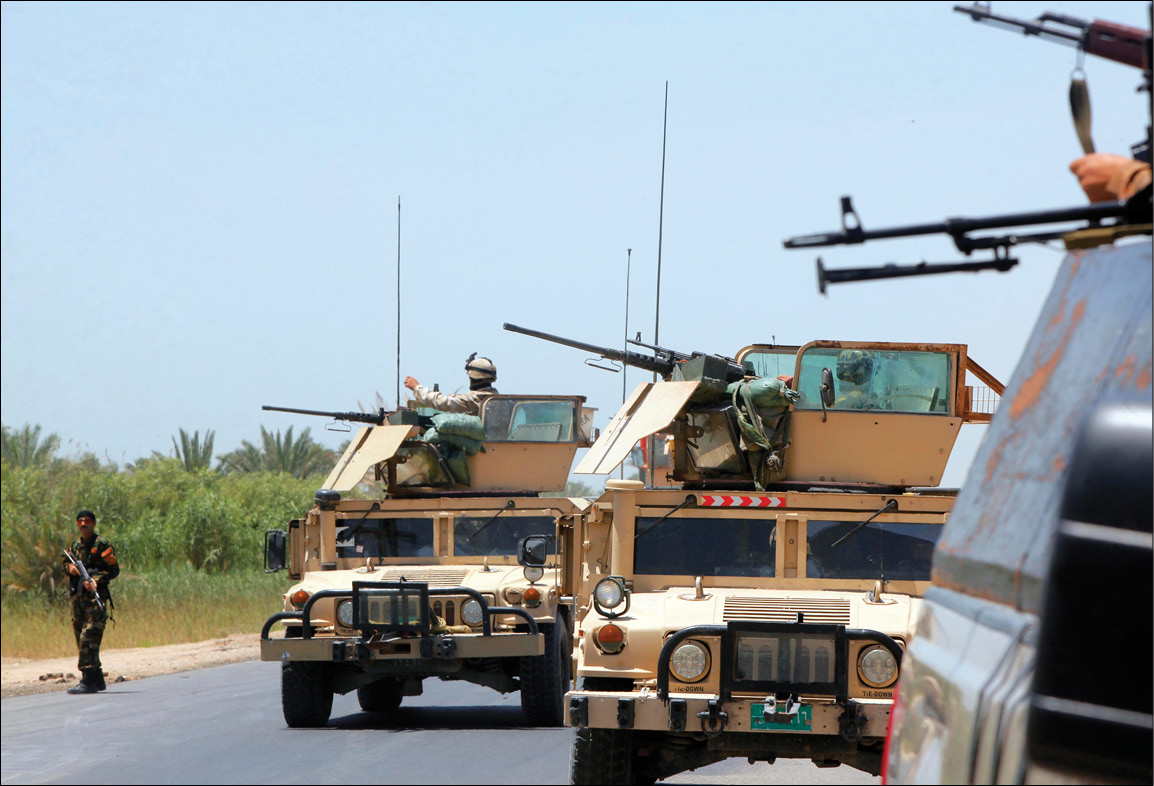 ويضيف التقرير انه خلف خطوط النار في الصحراء العراقية، حيث يقوم أفراد شرطة نينوى بتلقي تدريبات من أجل استعادة منازلهم في داخل الموصل وحولها، إلأ انهم يعانون من شيء واحد وهو نقص السلاح،