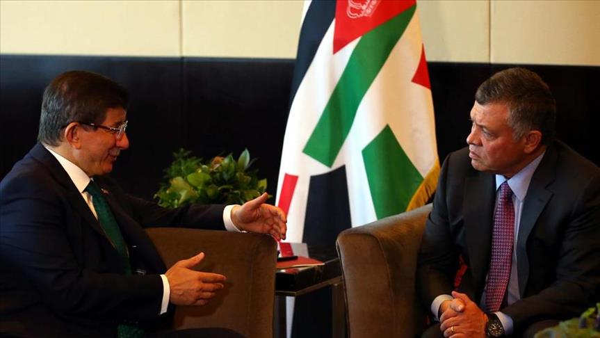 بحث العاهل الأردني الملك عبدالله الثاني مع رئيس الوزراء التركي أحمد داوود أوغلو الجهود الإقليمية والدولية في الحرب على الإرهاب.