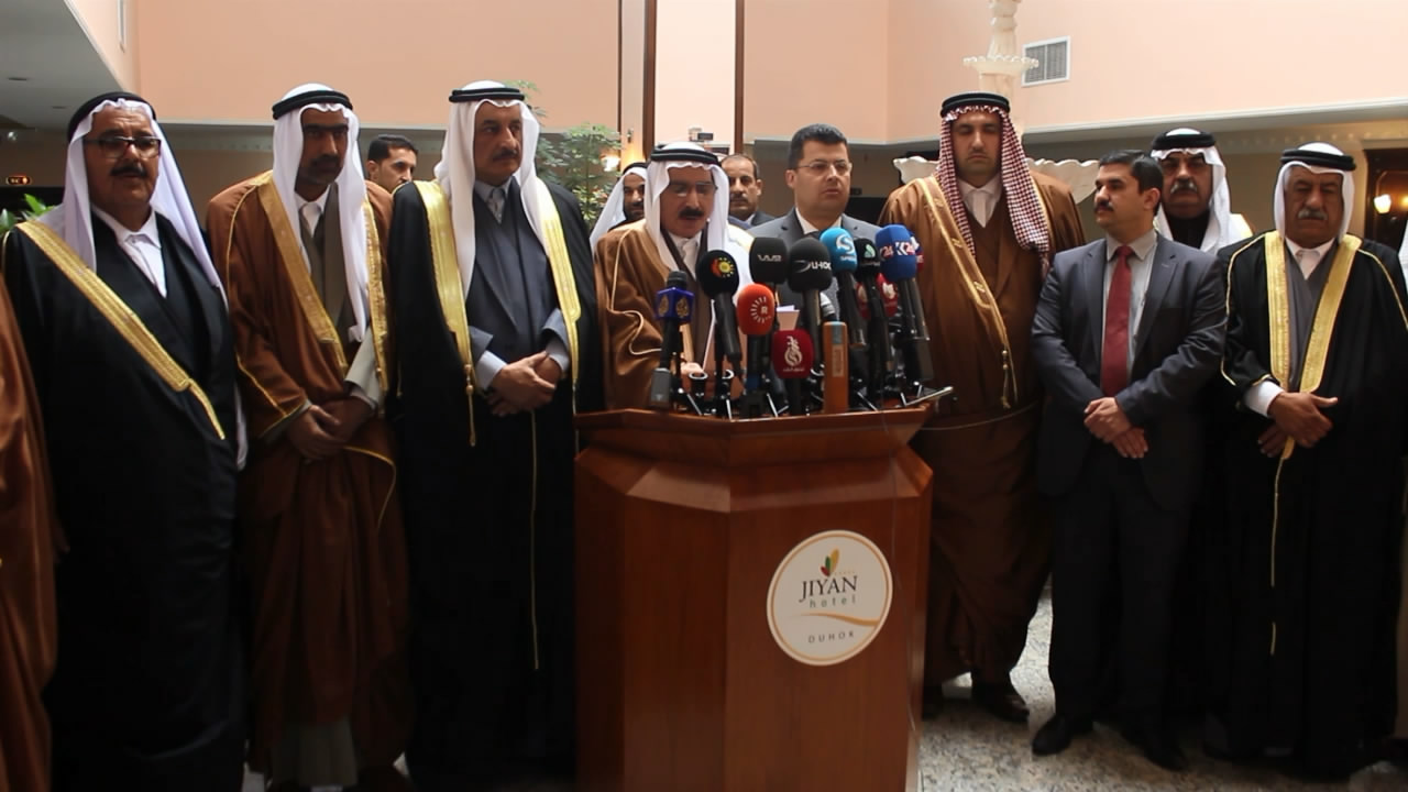 أعلن وجهاء ورؤساء العشائر في نينوى عن برائتهم من ممارسات داعش، فيما اكدوا في الوقت نفسه إستعدادهم لحمل السلاح لمواجهة التنظيم،