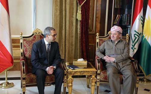 بحث رئيس إقليم كردستان مسعود بارزاني مع سفير النمسا الجديد لدى العراق والاردن ميشيل ديزير استعدادات تحرير الموصل.