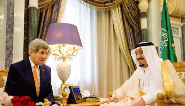 اجتمع وزير الخارجية الأمريكي جون كيري مع الملك سلمان عاهل السعودية، الأحد، لبحث الهدنة الهشة في سوريا قبيل محادثات أوسع نطاقا مع روسيا وإيران ودول أخرى في فيينا يوم الثلاثاء المقبل.