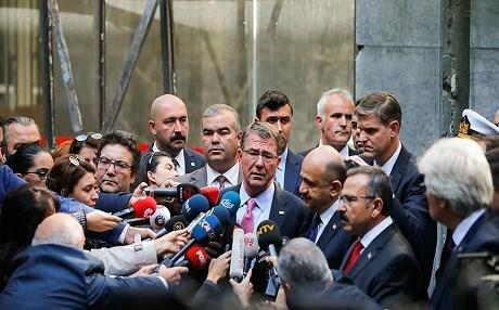 وعقب اجتماعه برئيس الوزراء التركي، بن علي يلدريم، اجتمع الوزير الأميركي بالرئيس التركي، رجب طيب أردوغان. كما بحث كارتر مع القادة الأتراك القضايا الأمنية في المنطقة، والتطورات الأخيرة في العراق وسوريا، وكذلك أزمة بعشيقة.