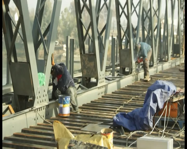 مدير المشروع المهندس حامد محمد عبود أوضح أن مدة العمل لانجاز الجسر ستة أشهر وحاليا العمل وصل الى المراحل النهائية بعد إكمال نصب الهيكل الحديدي لثلاثة فضاءات، مشيراً الى صب أرضية الجسر نهاية الاسبوع الحالي.