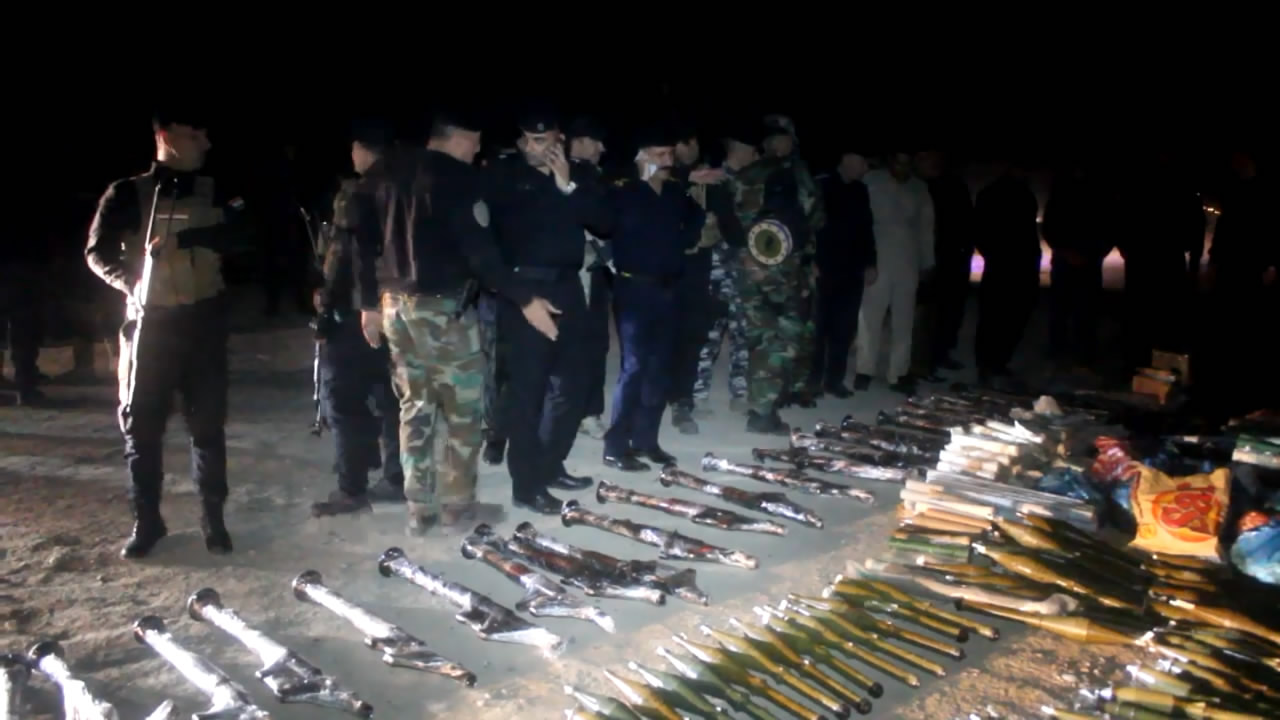 الجبوري قال إن فوج طوارئ الشرطة الخامس في مديرية شرطة المحافظة من ضبط عجلة محملة بكميات ضخمة من السلاح في ساحة الحصو والرمل بمدخل منطقة حي القدس في الجانب الأيسر لمدينة الموصل .