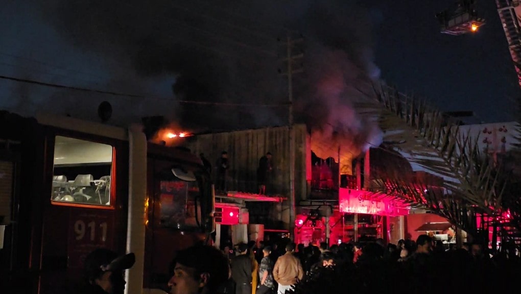 اندلع حريق هائل في الساعات الماضية في مخزن تجاري ضخم مخصص لبيع الدراجات النارية والإطارات في منطقة حي العامل بمحافظة كربلاء