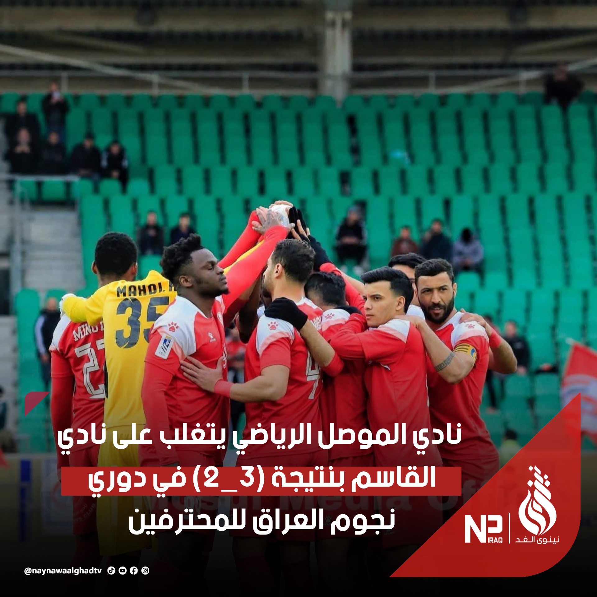 عاد فريق الموصل بثلاث نقاط ثمينة بعد تغلبه على مضيفه القاسم بنتيجة 3-2 في اللقاء الذي احتضنه ملعب النجف الدولي