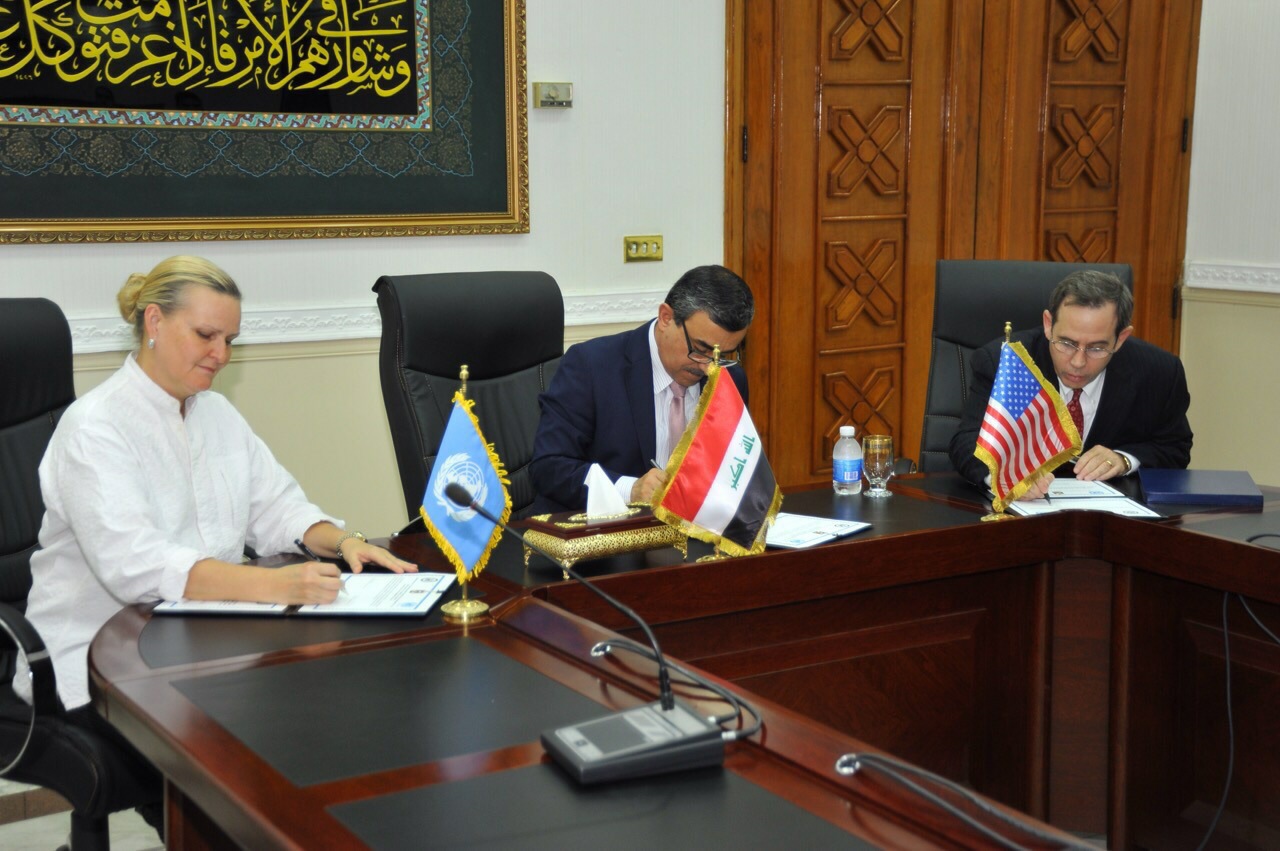 وقعت الحكومة العراقية مع الولايات المتحدة والامم المتحدة اقرارًا بمنحة مالية لتحقيق الاستقرار الفوري وتأهيل المناطق المحررة من سيطرة تنظيم داعش بلغت دفعتها الاولى 8 ملايين دولار .