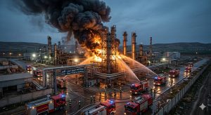 حريق كبير يندلع في مصفاة نفط على طريق (أربيل – گوير) والدفاع المدني يستنفر